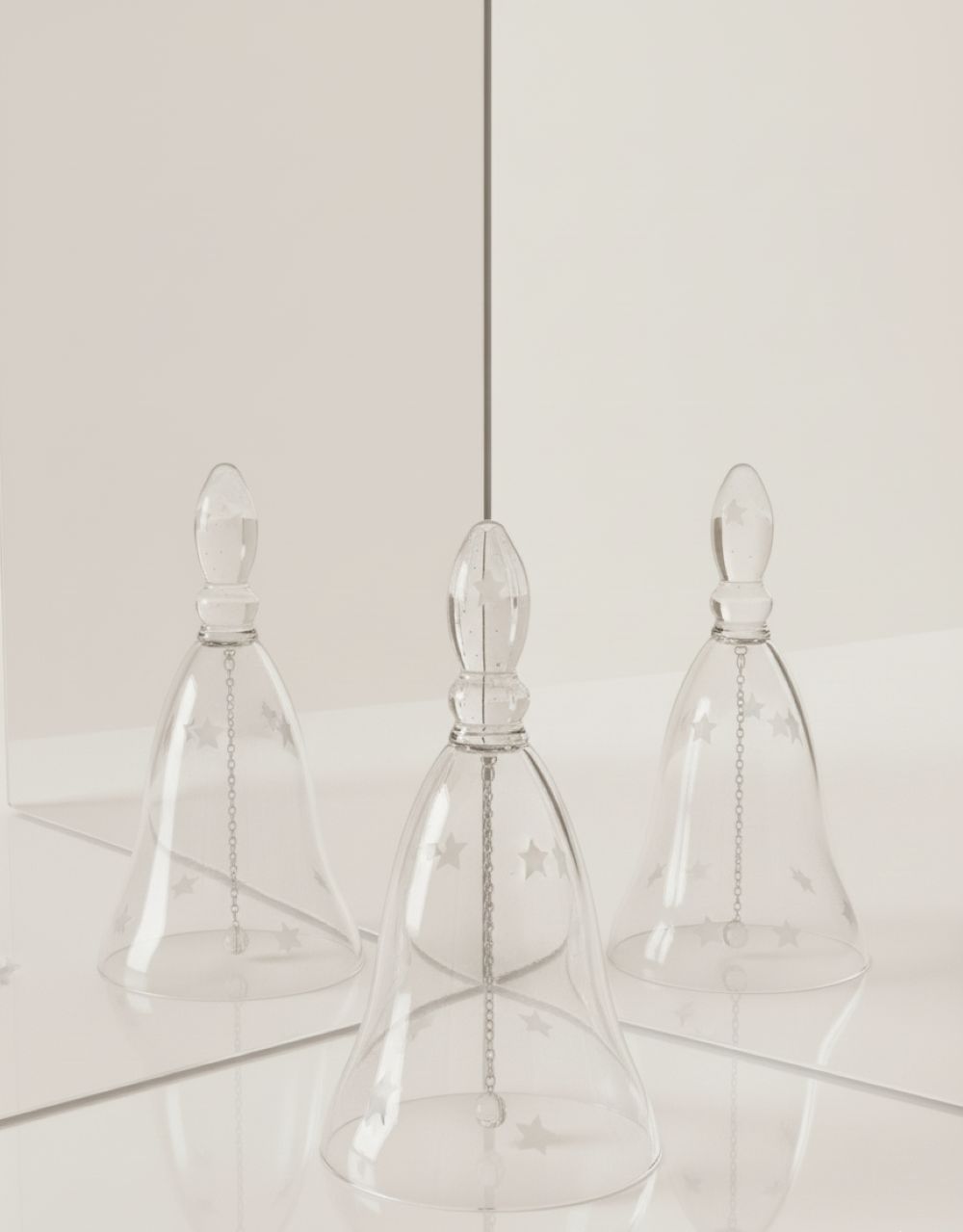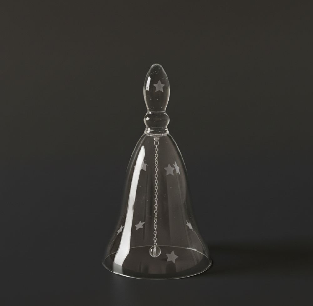 Skleněný křišťálový zvoneček s hvězdičkami.