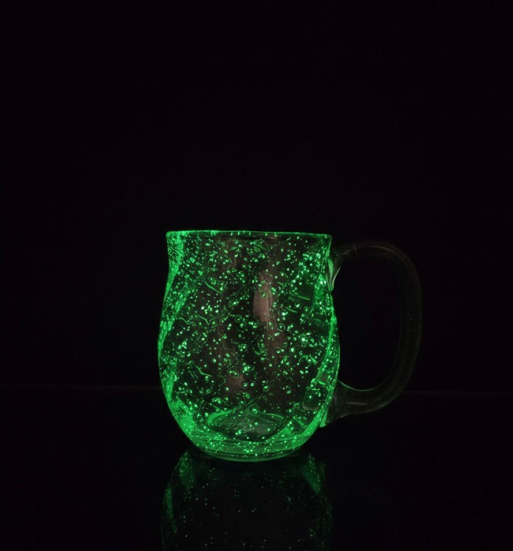 Fluorescenční svítící skleněný půllitr ZELENÝ