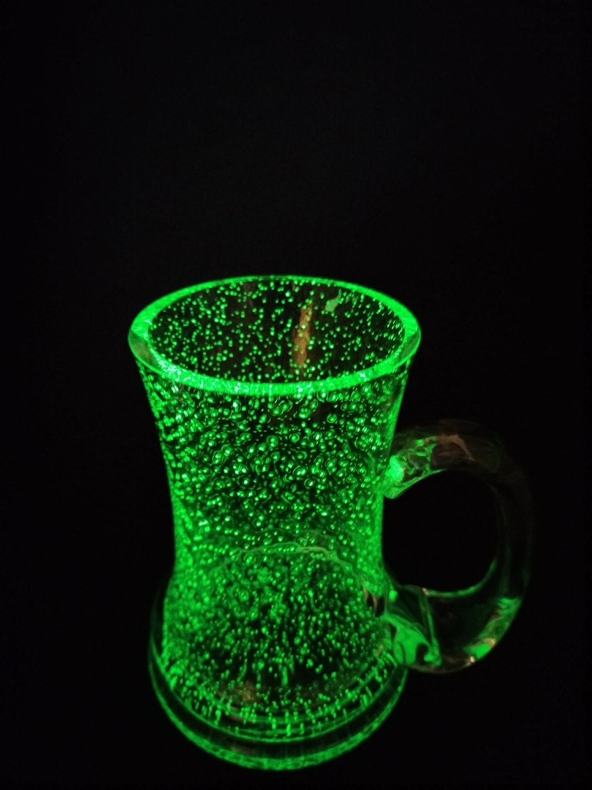Fluorescenční svítící skleněný půllitr ZELENÝ Doprodej