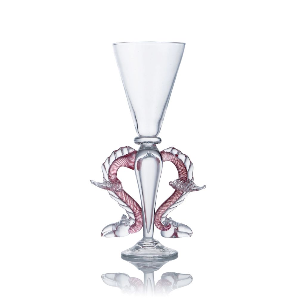 Vstupte do světa legend a řemeslné dokonalosti s tímto jedinečným skleněným pohárem, jehož středobodem jsou dva draci, ručně tvarovaní do stonku s neuvěřitelnou precizností.