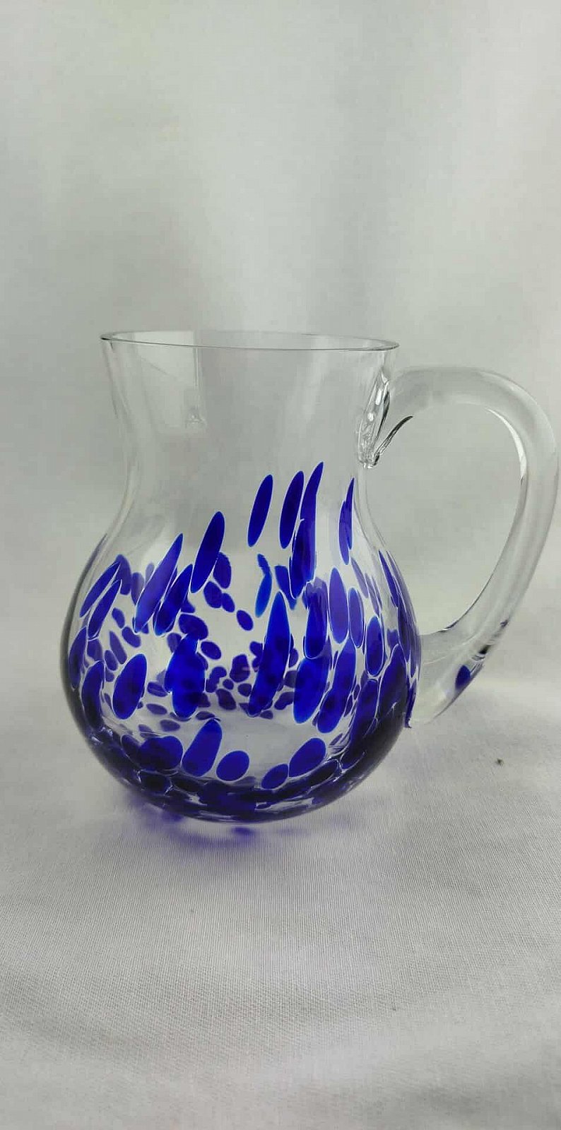 Skleněný, ručně tvarovaný půllitr s broušeným hrdlem z hutního skla.