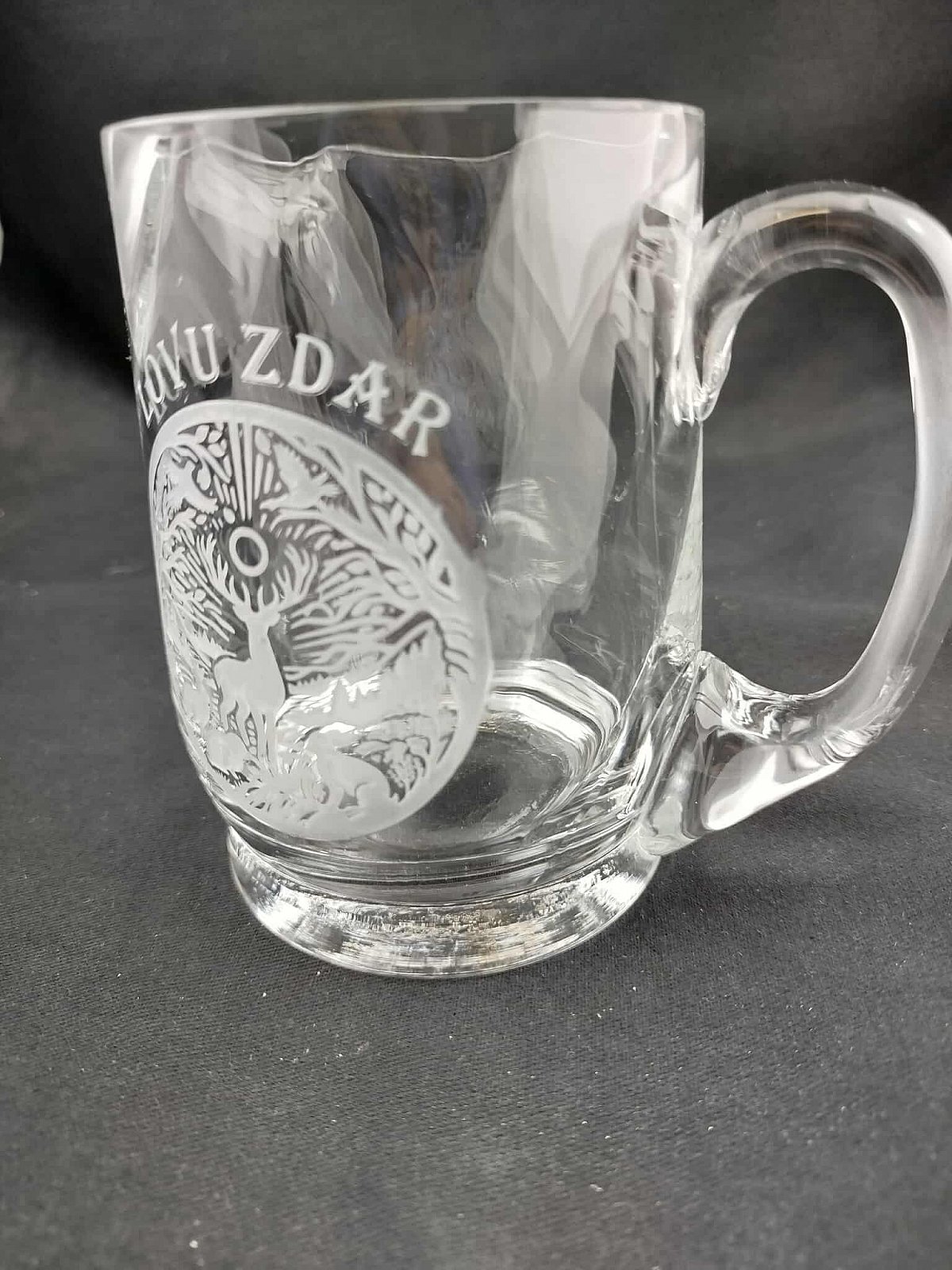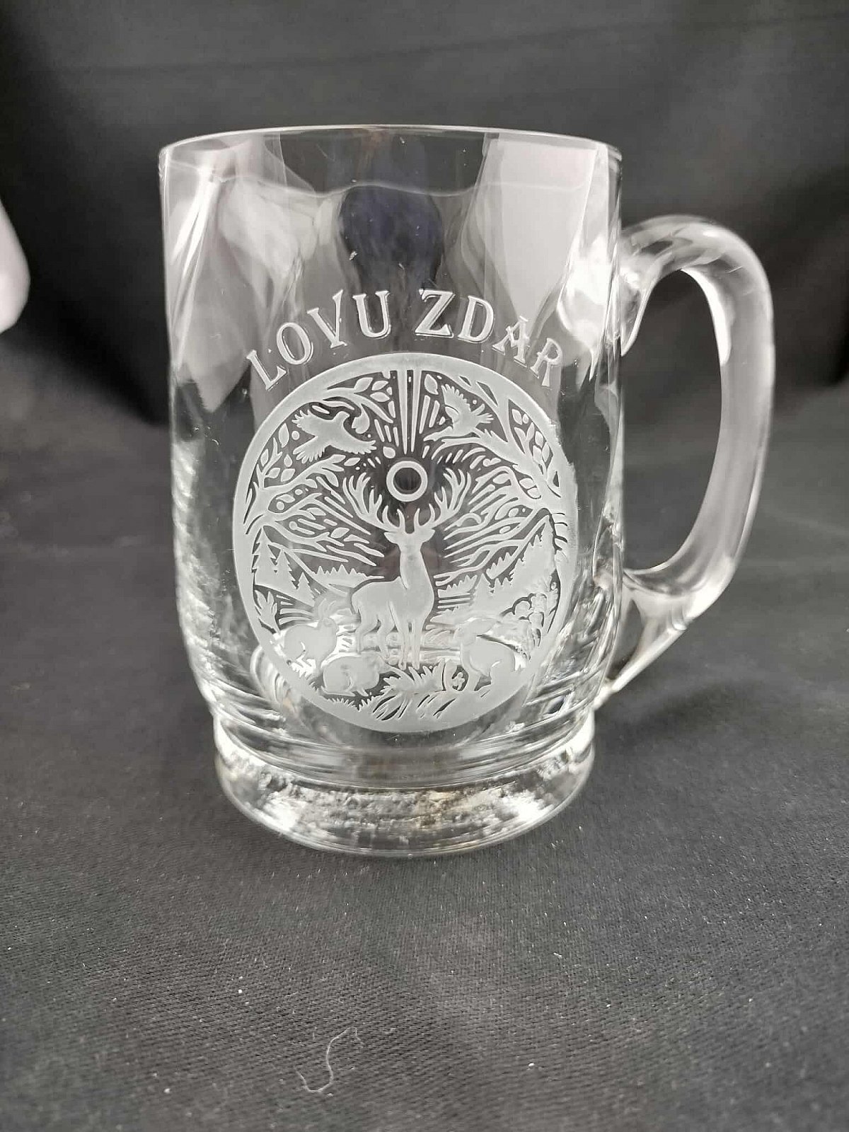 Skleněný půllitr na pivo s motivem Lovu zdar. Doprodej.