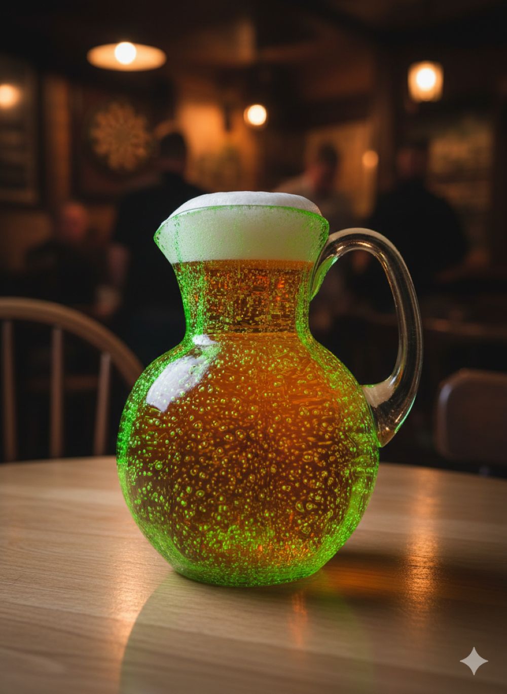 Skleněný džbán s fotoluminescenčním pigmentem – doprodej